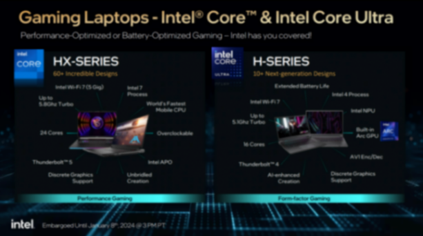 去年底英特爾發布了酷睿Ultra系列處理器,全新的架構與制程,使其成為未來從超輕薄至高端移動平臺的強勁動力。而在本次CES 2024展會上,英特爾則發布了面向旗艦平臺,超級發燒友及高端創設用戶的14代移動處理器(酷睿HX系列)。相較前幾代,英特爾重新調整了整個系列的格局。